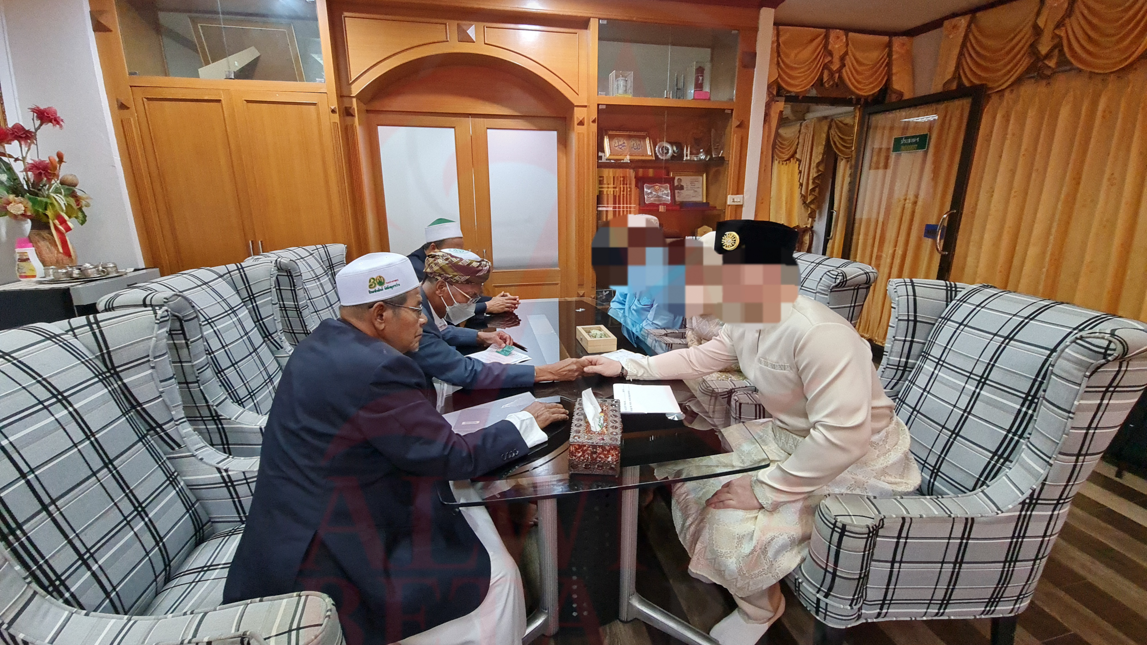 PIHAK KAMI akan menguruskan secara peribadi (mengikut pilihan Pakej) dengan mambawa pasangan yang ingin bernikah ke Majlis Agama Islam Selatan Thailand Yang Diiktiraf Kerajaan dimana semua urusan pernikahan akan dilakukan oleh Jurunikah Bertauliah. Pihak kami juga akan menguruskan pelanggan untuk urusan Pendaftaran Dokumen Nikah di Konsulate Malaysia Songkhla bagi membolehkan pasangan kembali mendaftar Pernikahan di Malaysia.